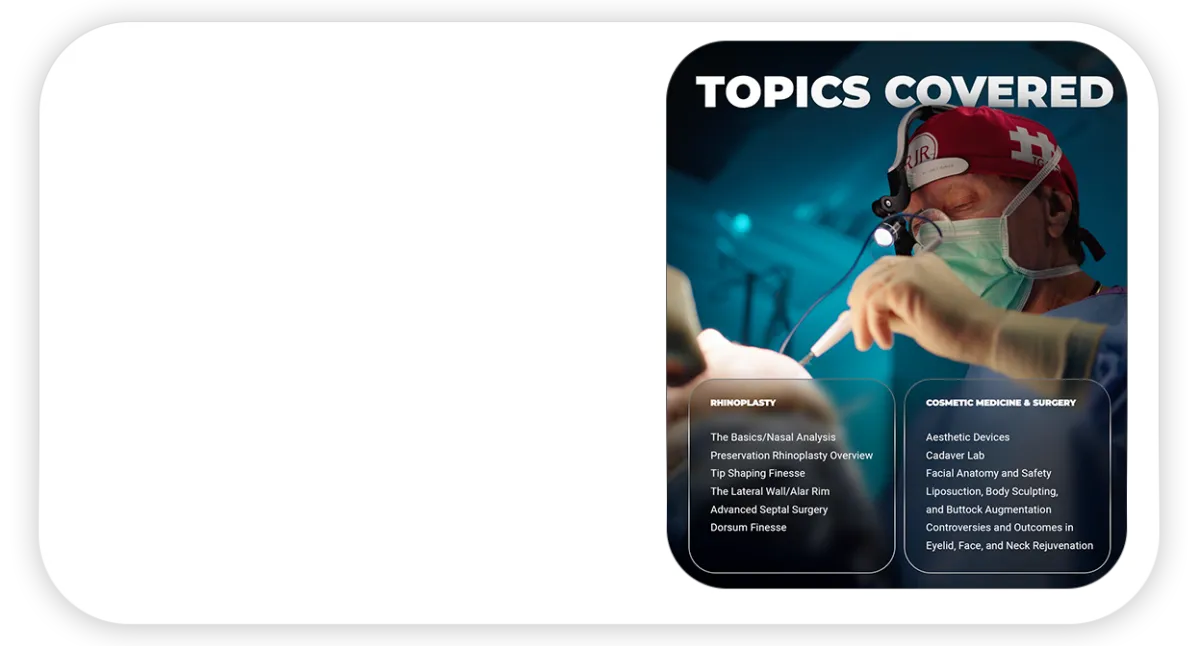 Train and elevate your skillset faster than any other course on Rhinoplasty & cosmetic meeting.